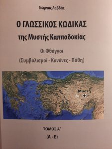 Πρόσφατα, εκδόθηκε το νέο βιβλίο μου, με τίτλο «Ο ΓΛΩΣΣΙΚΟΣ ΚΩΔΙΚΑΣ της Μυστής Καππαδοκίας, Οι φθόγγοι (Συμβολισμοί – Κανόνες – Πάθη), Τόμος Α΄ (Α-Ε)».